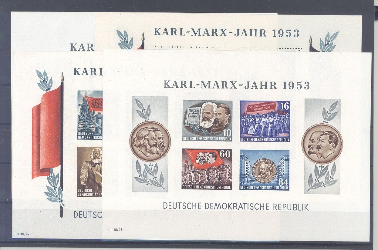 DDR Block 8/9 A+B Marx Blöcke **, ein Block ist etwa gebräunt, sonst ein ordentliches Blockpaar.