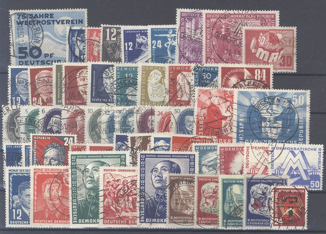 DDR Mi.Nr. 242/97, die Jahre 1949/51 fast komplett gestempelt, es fehlt nur der Block 7. Zwei Werte haben einen Wellenstempelansatz, sonst ein ordentlicher Posten.
