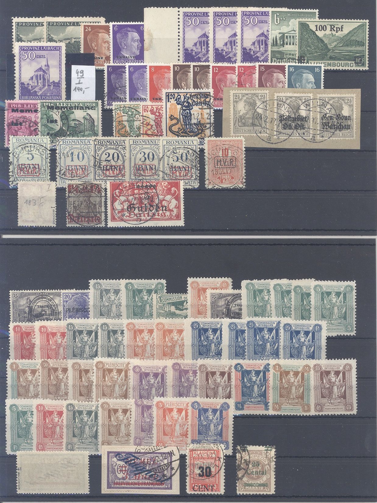 Deutsche Nebengebiete vor 1945, umfangreicher Posten mit auch dubiosen Werten auf vier Steckkarten, einfach zusammengesteckt was vorgefunden. Vollkommen unberechnet, sollte bereits aufgrund der Materialfülle ein nettes Schnäppchen sein