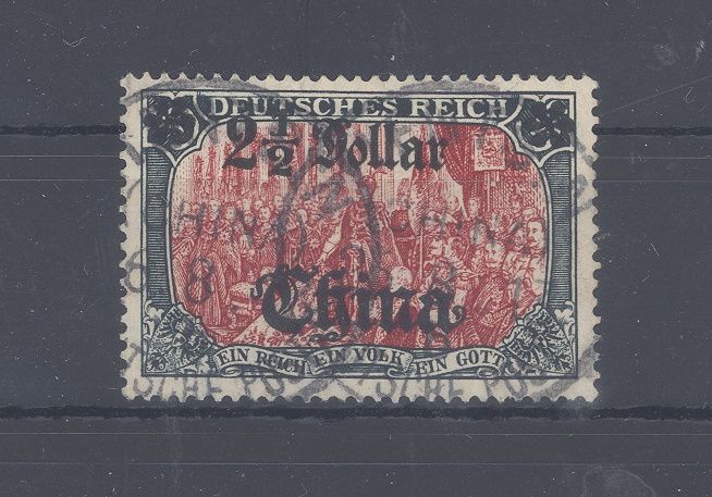 Deutsche Post China Michel Nummer 47 A Ib, 2 1/2 Dollar Freimarke 1901 gestempelt. Der Wert ist geprüft Steuer BPP.