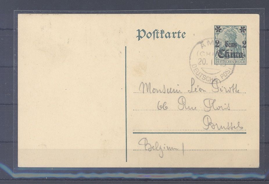 Deutsche Post China, Postkarte 1915 mit gutem Stempel Amoi klar angebracht. Selten einmal angeboten.