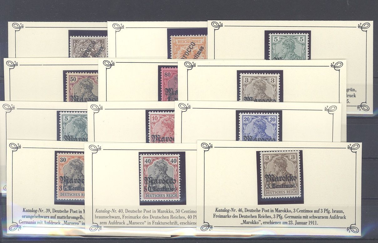 Deutsche Post Marokko, kleiner ** Posten in sehr guter Erhaltung auf Sieger Kärtchen, dabei auch Mi.Nr. 5, 28/29, 34/37 und 39/40. In dieser Form selten einmal angeboten.