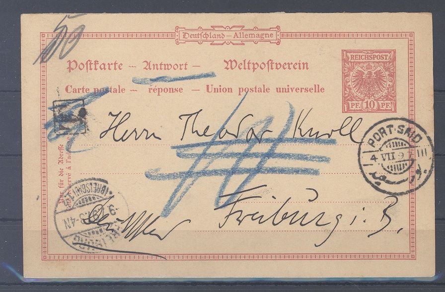 Deutsche Post Türkei, saubere Antwortkarte aus Port Said / Ägypten gelaufen. Nette Ergänzung zur Sammlung.