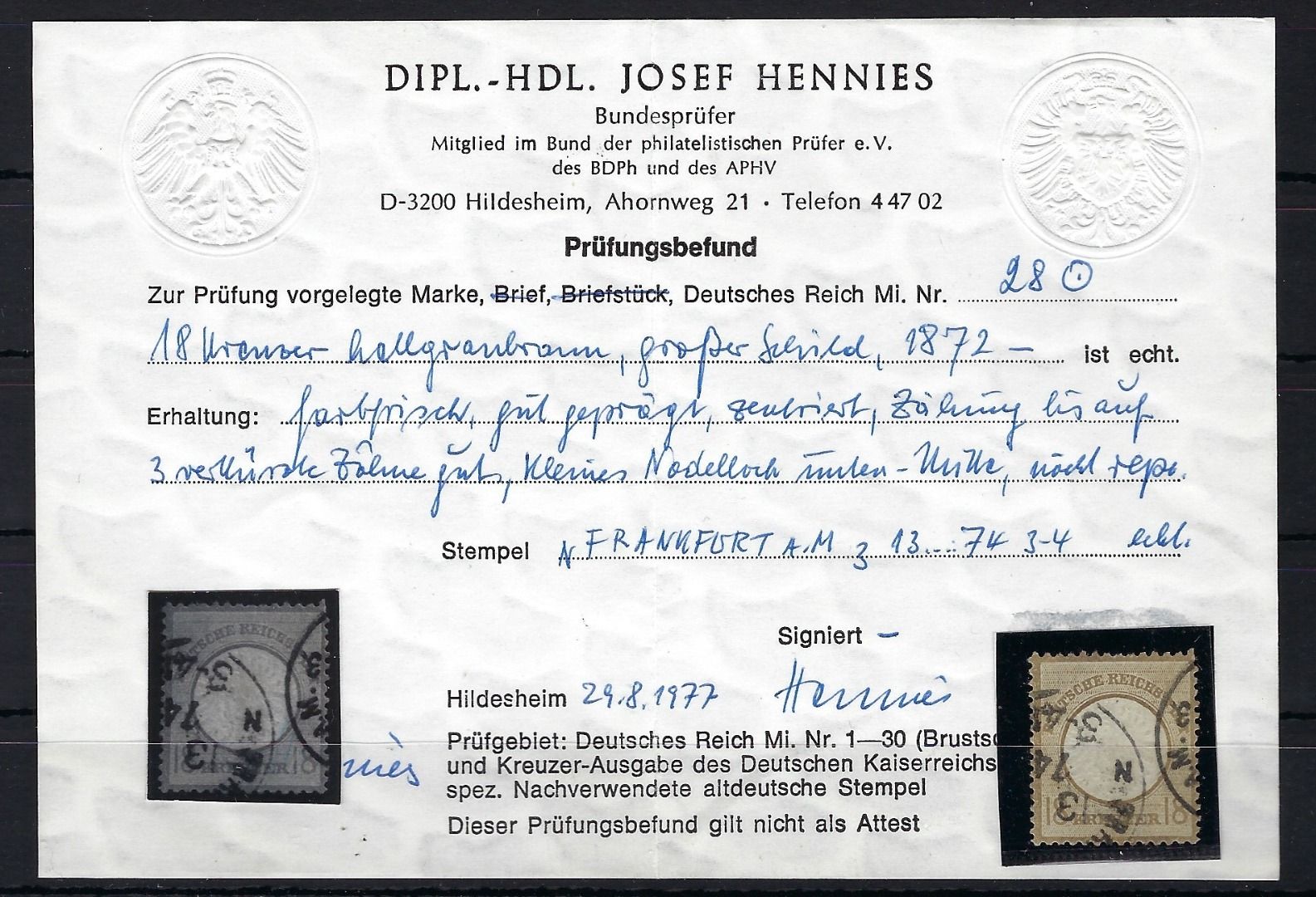 DR Brustschilde, Mi 28 ° mit Befund Hennigs BPP, Winziger Nadelstich zwischen R und A von Frankfurt