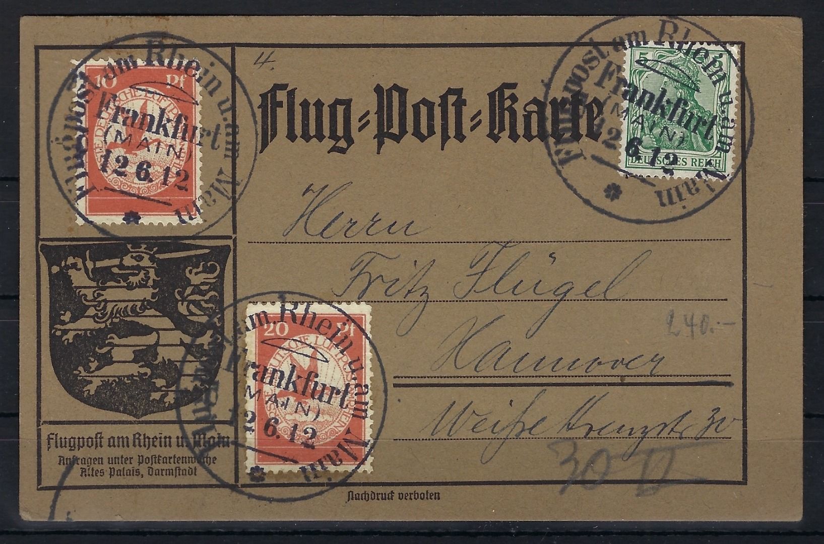 DR Flugpost 1912, Mi II (2) Flugpostkarte nach Hannover