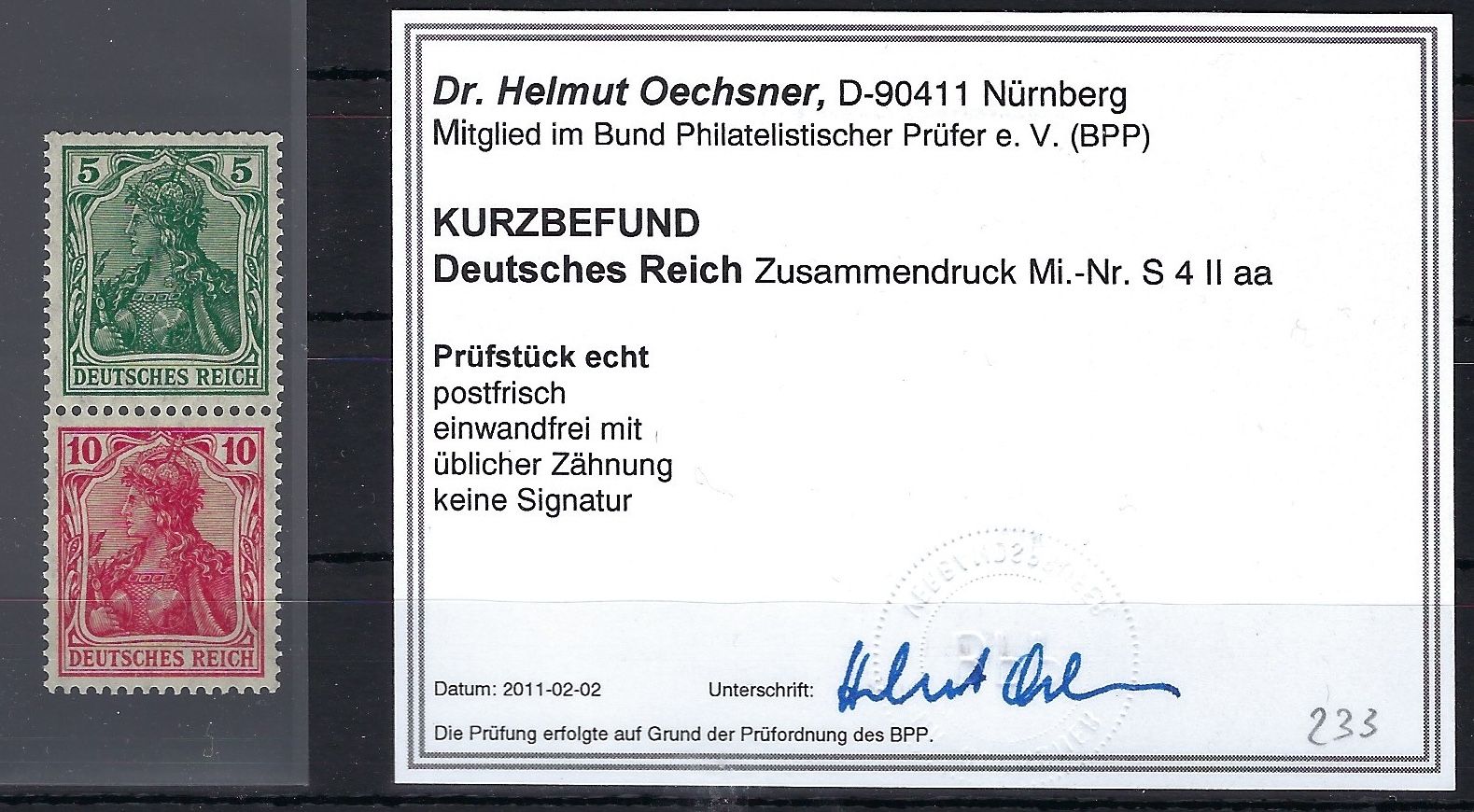 DR Germania ZD S 4 IIa ** mit KB Dr. Oechsner BPP, ungefaltet