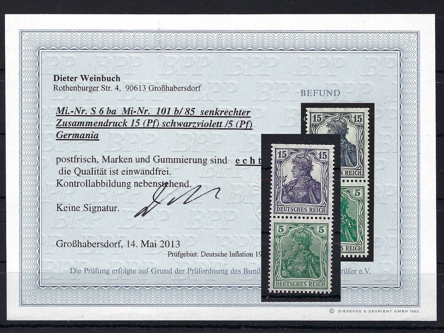 DR Germania ZD S 6 ba **, Befund Weinbuch BPP, ungefaltet