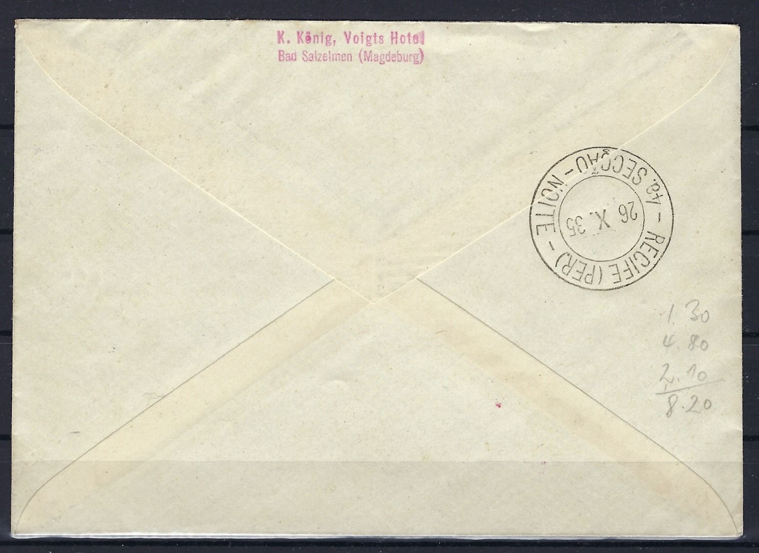 DR H-Blatt 104 B (ohne Rand) Zeppelinbrief nach Recife, Europa-Südamerika, Zähnung teilweise etwas bräunlich sonst gute Qualität