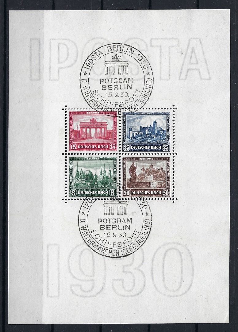 DR Iposta 1930, Block 1 mit besseren SoSt, mit Einschränkung; obere waagerechte Zähnung angetrennt, Marken in absoluter einwandfreier Qualität