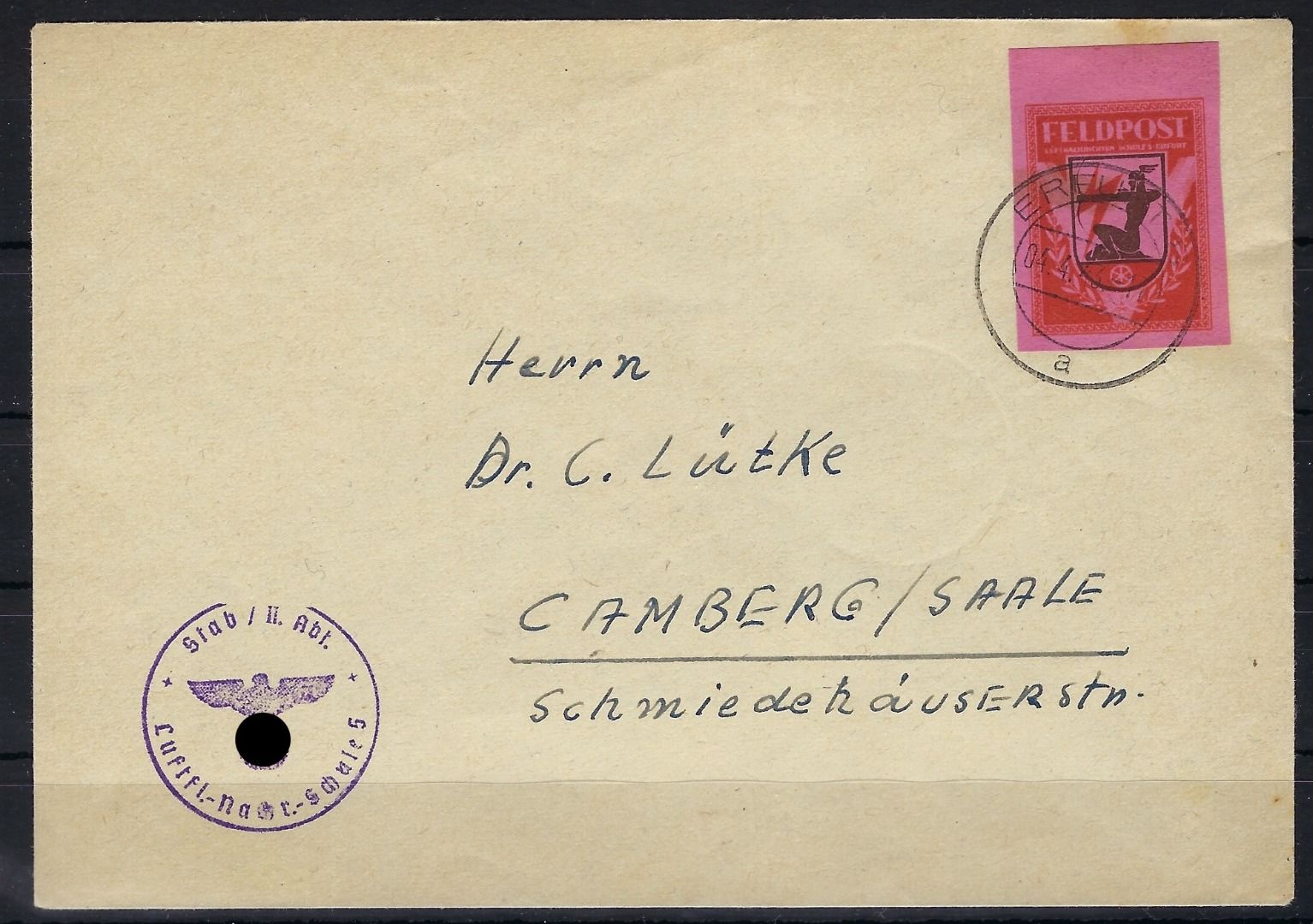 DR Private Feldpostmarke, Luftnachrichten Schule Erfurt, auf Brief