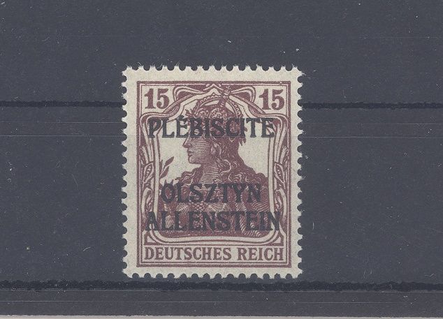 Deutsche Abstimmungsgebiete Allenstein Michel Nummer 4 b I, die Siegesmarke in der Farbe b **. Der Wert ist geprüft BPP, selten einmal angeboten!