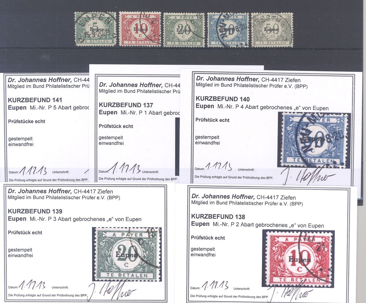 Dt. Abstimmung Eupen, gestempelter Posten Abarten, 5 Befunde BPP