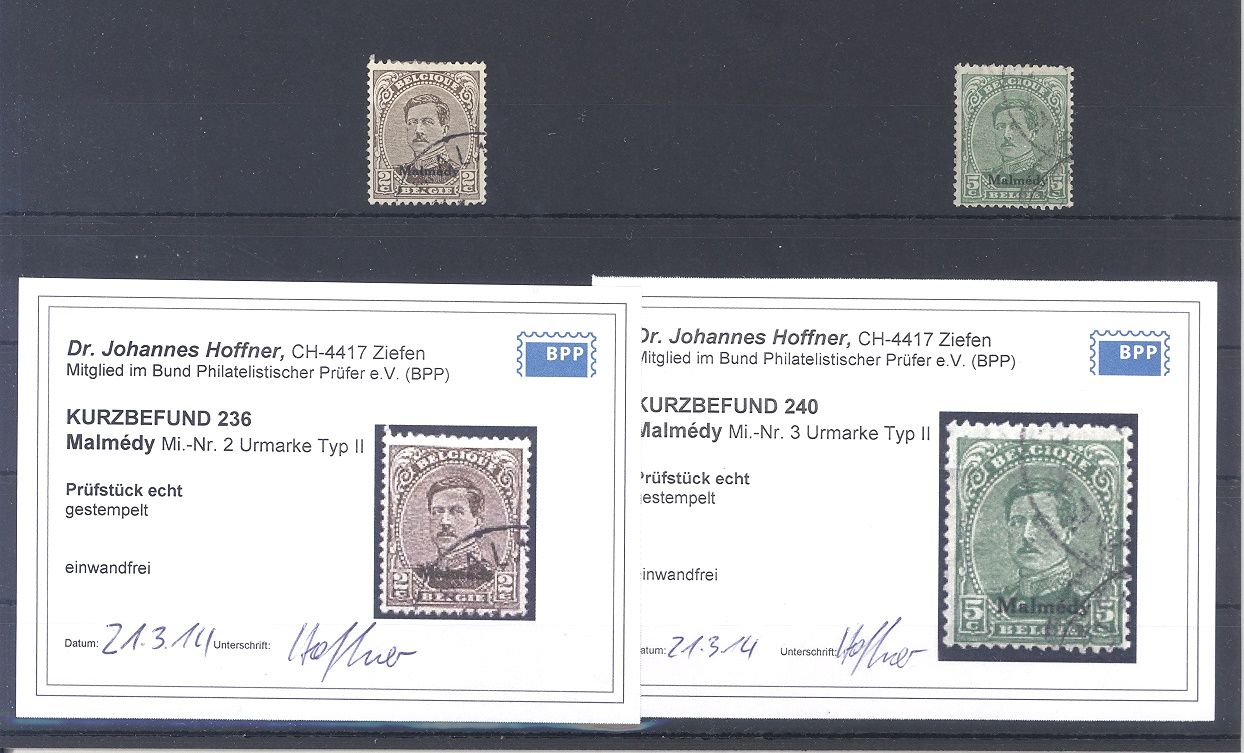 Dt. Abstimmung Malmedy Michel Nr. 2-3A II gestempelt, Befunde BPP