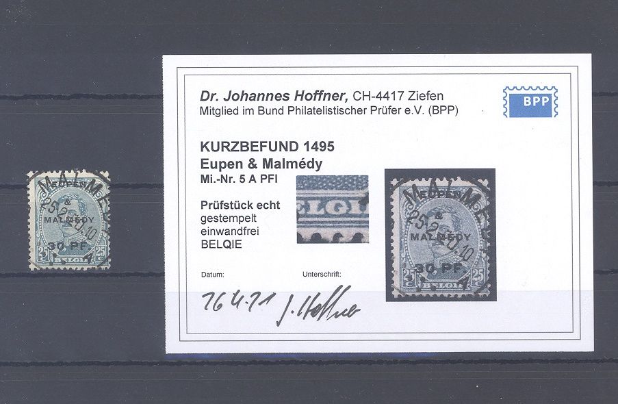 Deutsche Abstimmungsgebiete Michel Nummer 5 A I, 15 Pfg- Freimarke 1920 mit dem Plattenfehler I gestempelt. Es liegt ein Befund BPP vor, hat bereits einiges gekostet, ist mit eingescannt, der Michel beträgt -,-.