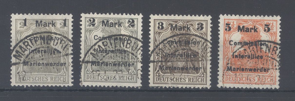 Deutsche Abstimmung Marienwerder Michel Nummer 22/25, Freimarken 1920 gestempelt. Stets billigste Typen gerechnet.