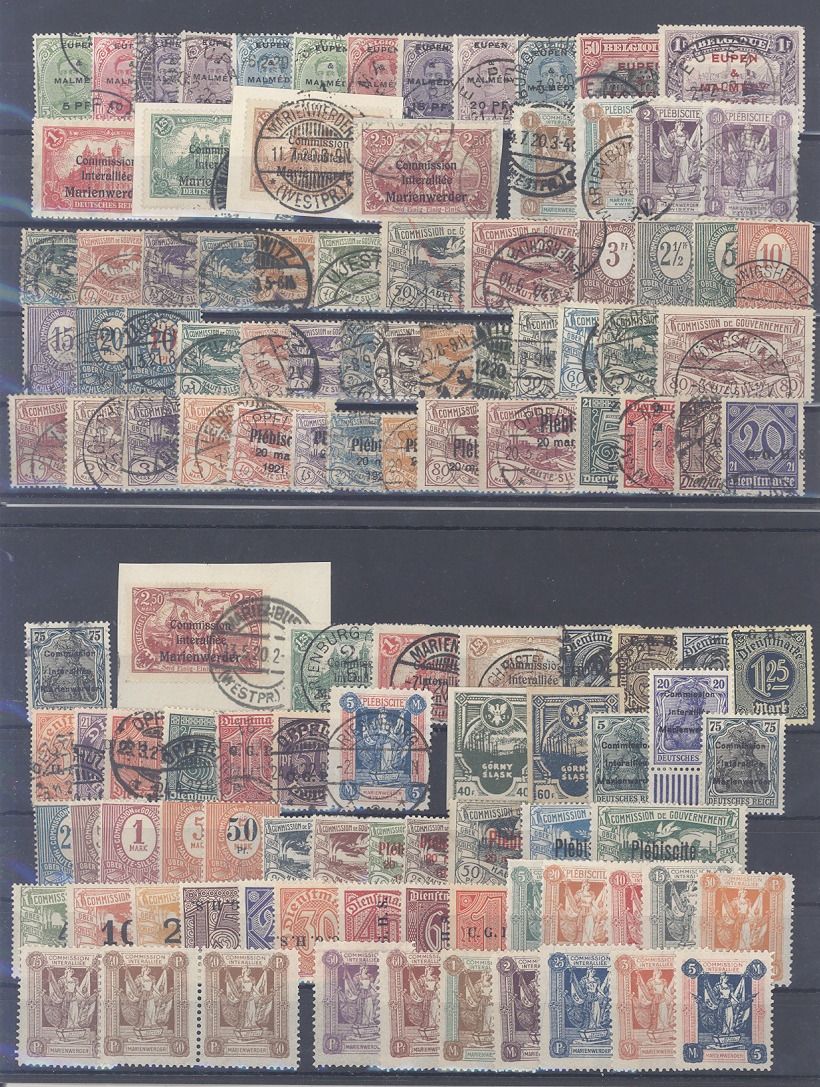 Deutsche Abstimmungsgebiete, umfangreicher Posten auf zwei Steckkarten, dabei auch eine ganze Reihe an besseren Werten, einfach zusammengesteckt. Vollkommen unberechnet, sollte ein nettes Schnäppchen sein..