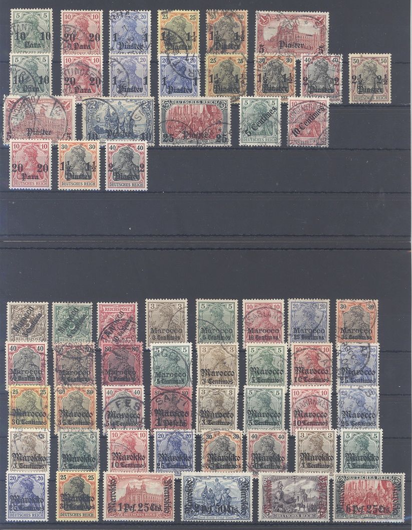 Deutsche Auslandspostämter, */**/gestempelter, meist gestempelter Posten auf drei Steckkarten, einfach zusammengesteckt mit auch acht Markwerten. Vollkommen unberechnet, sollte ein nettes Schnäppchen sein!