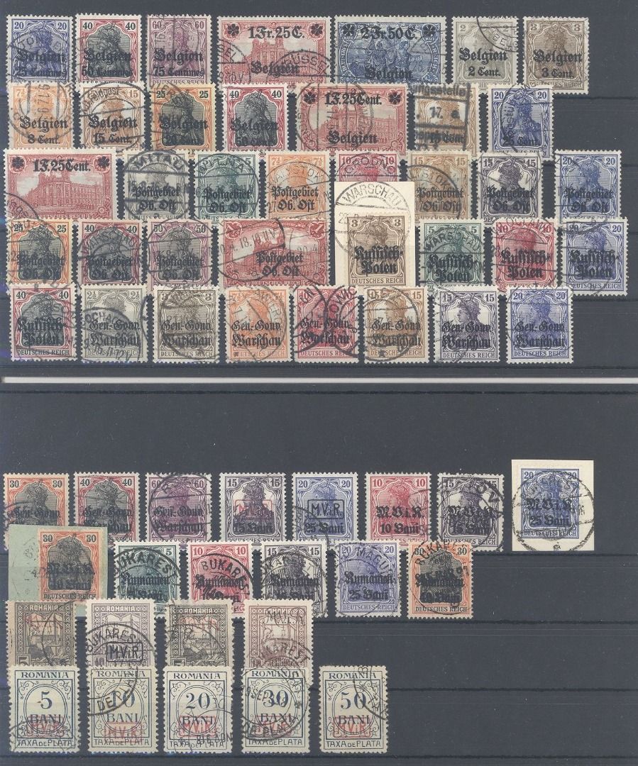 Deutsche Besetzung 1. WK, gestempelter Posten auf zwei Steckkarten, einfach zusammengesteckt mit auch besseren Werten. Vollkommen unberechnet, sollte angesichts der Materialfülle nicht teuer sein..