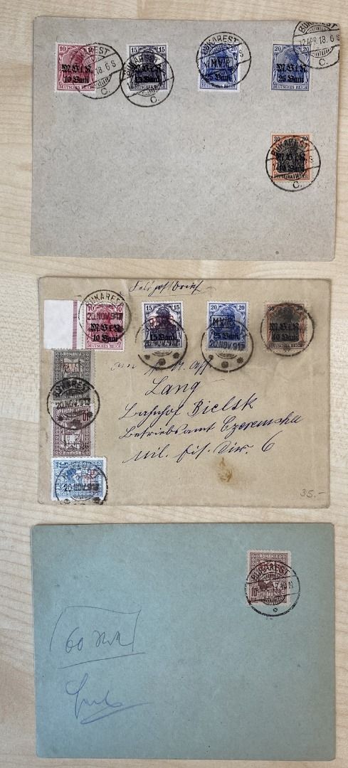 Deutsche Besetzung 1. WK Rumänien ,drei verschiedene Belege als Posten, dabei auch ein Brief mit einer schönen MiF. Nette Ergänzung zur Sammlung!