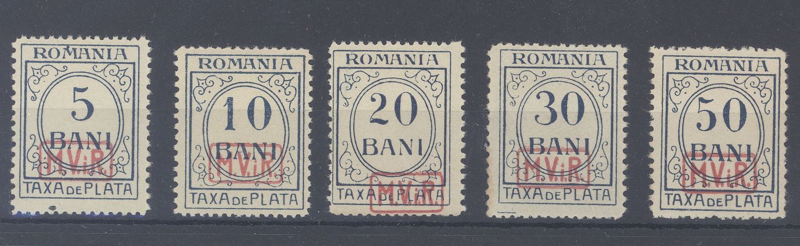 Deutsche Besetzung 1. WK Rumänien Porto Michel Nummer 1/5, Freimarken 1918 ** mit den wie auch im Michel angegeben hier üblichen gummifreien Stellen. Selten einmal angeboten!