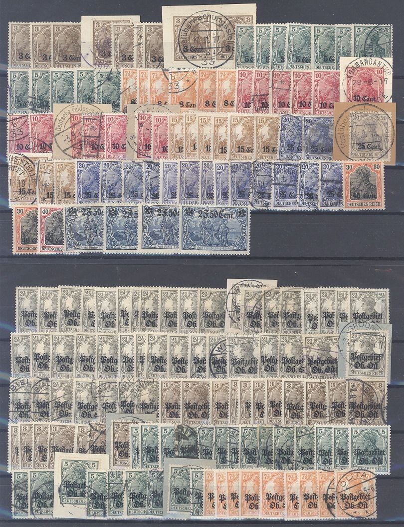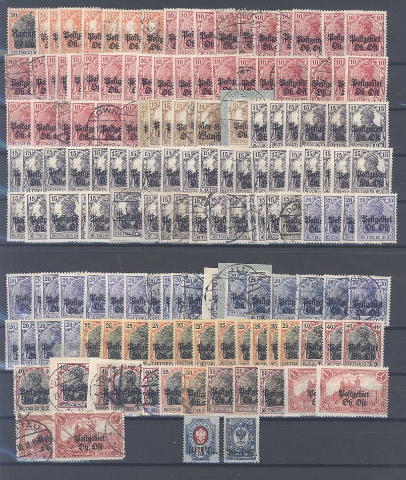 Deutsche Besetzung 1. WK, umfangreicher Posten auf vier Steckkarten, einfach zusammengesteckt mit auch Dorpat Mi.Nr. 1/2 ungebraucht *. Könnte eine schöne Fundgrube sein und sollte bereits aufgrund der Materialfülle sein Geld mehr als wert sein..