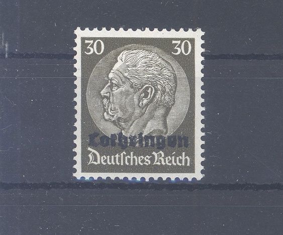 Deutsche Besetzung 2. WK Michel Nummer 11 I, 30 Pfg. Freimarken 1940 mit dem Plattenfehler I **. Der Wert ist geprüft BPP, nette Ergänzung zur Sammlung!