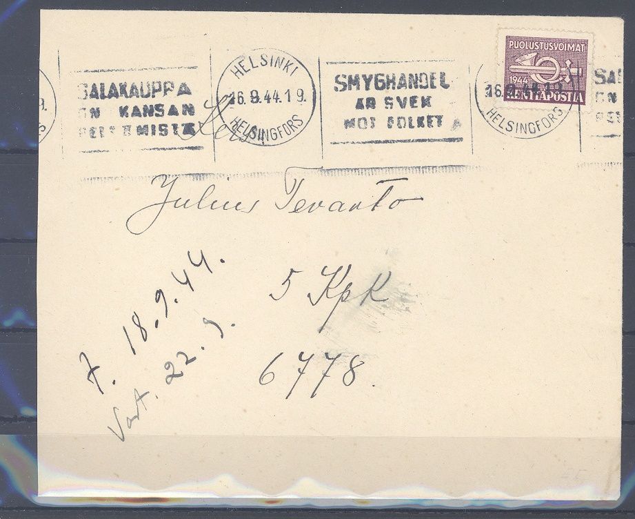 Deutsche Feldpost 2. WK, sauberer Brief aus dem Jahr 1944 aus Helsinki frankiert mit finnischer Frankatur.