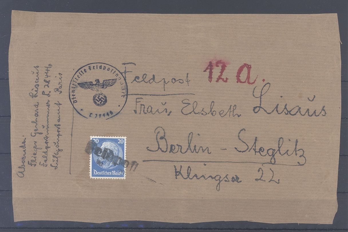 Deutsche Feldpost 2. WK, interessante Brief Vorderseite mit dem Handstempel " Feldpost" und frankiert mit 20 Pfg. Hindenburg. Nette Ergänzung zur Sammlung!