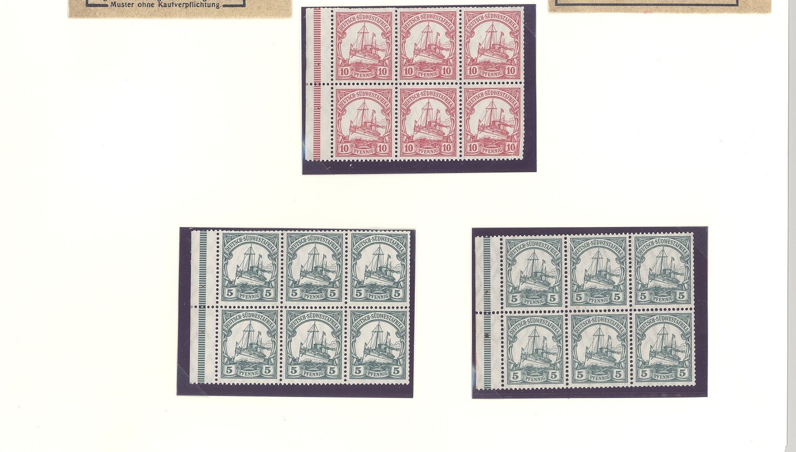 Deutsche Kolonien Deutsch Südwestafrika, interessantes Blatt mit Markenheftchendeckeln und -blättern. Selten einmal angeboten und nette Ergänzung zur Sammlung!