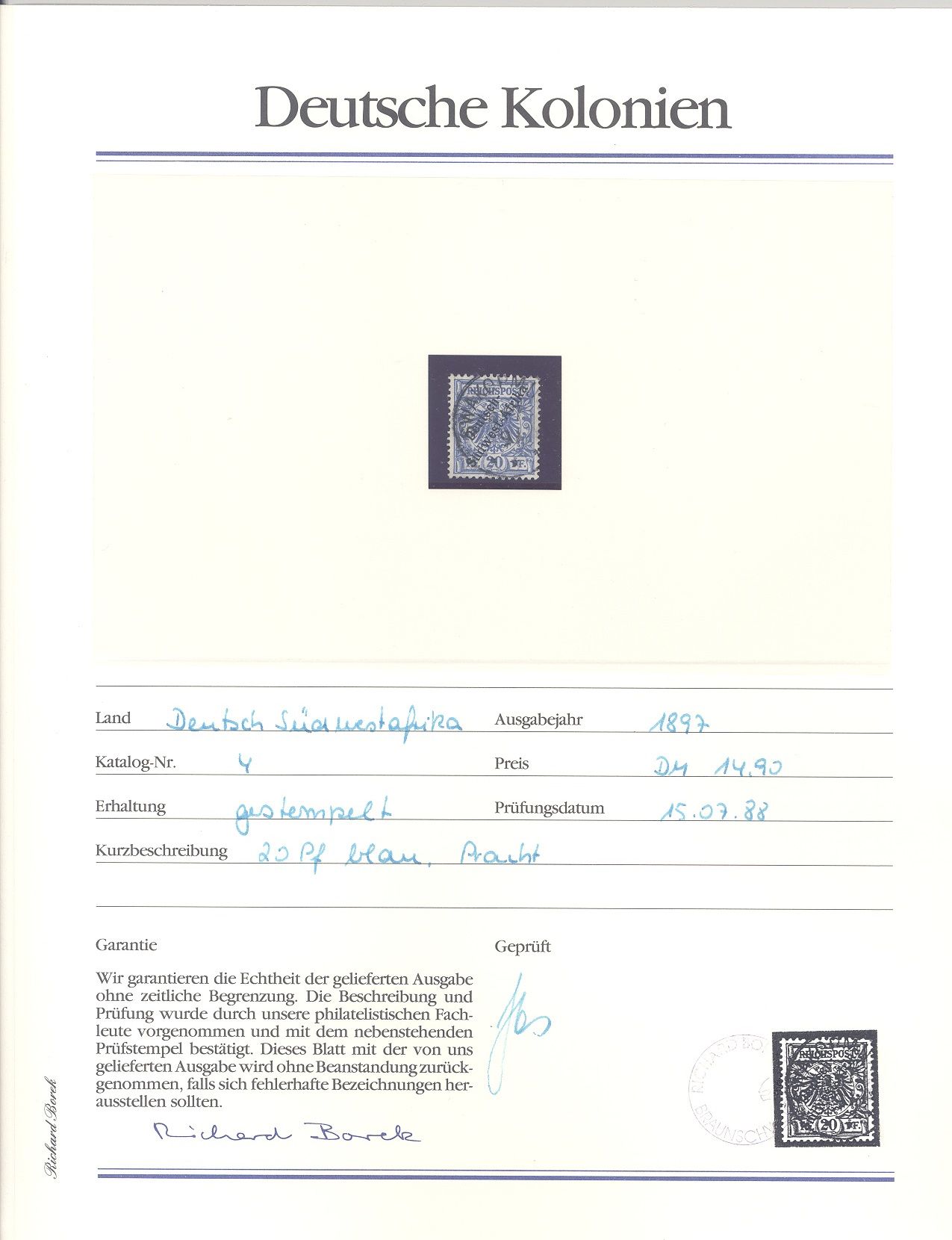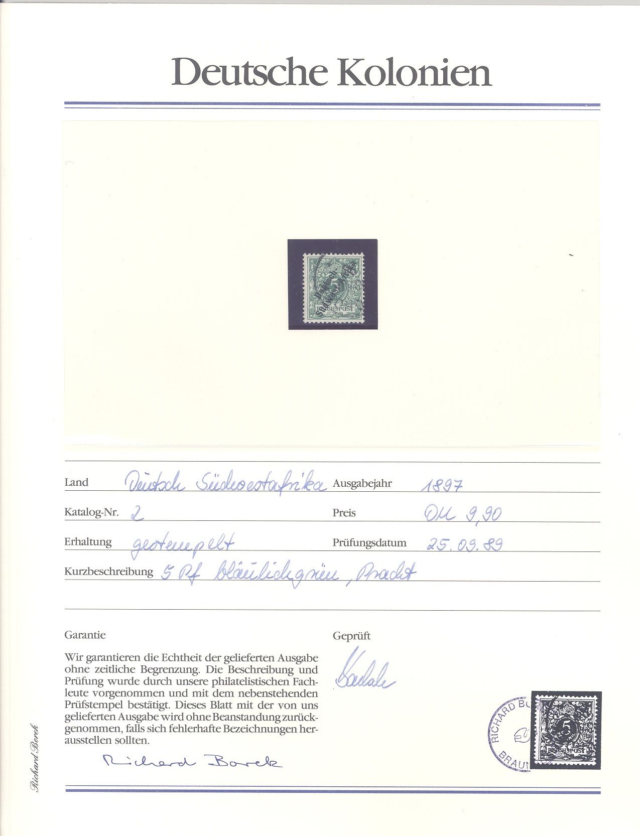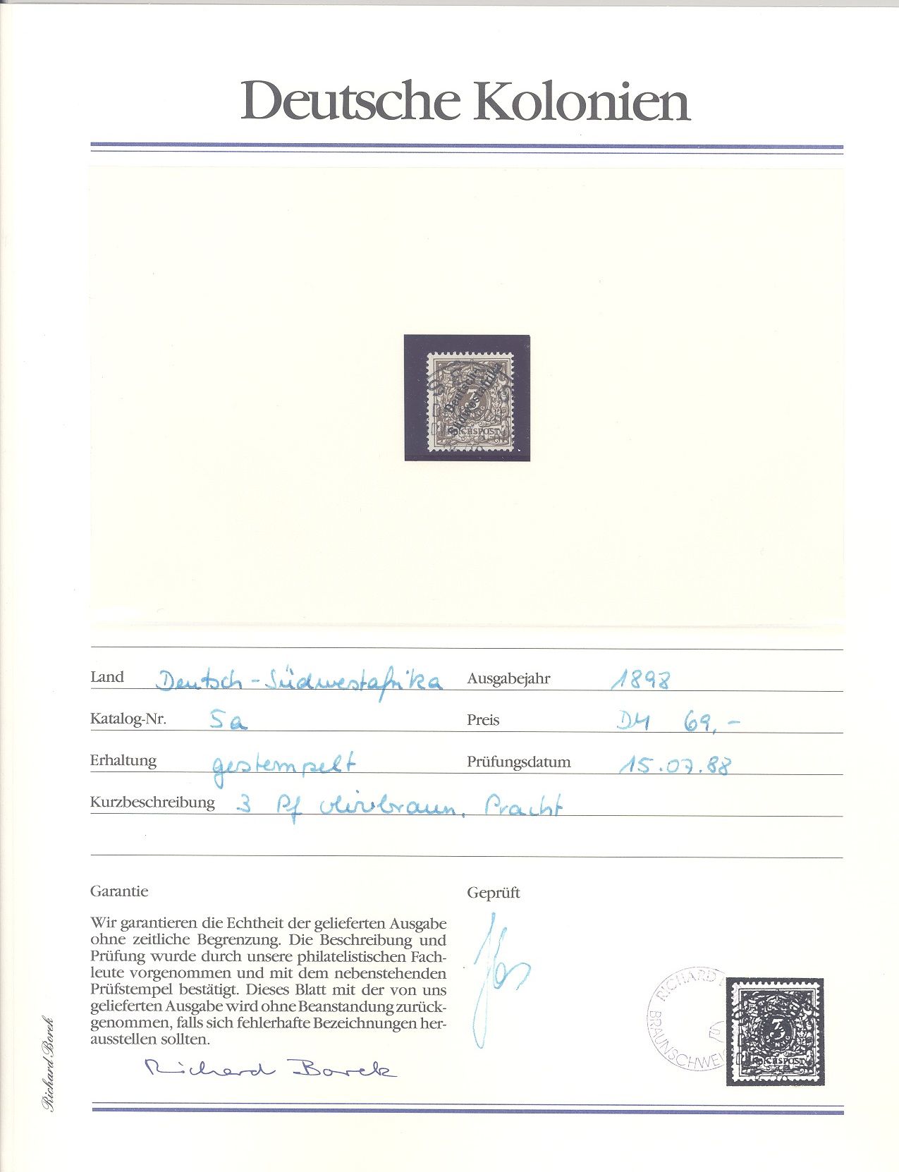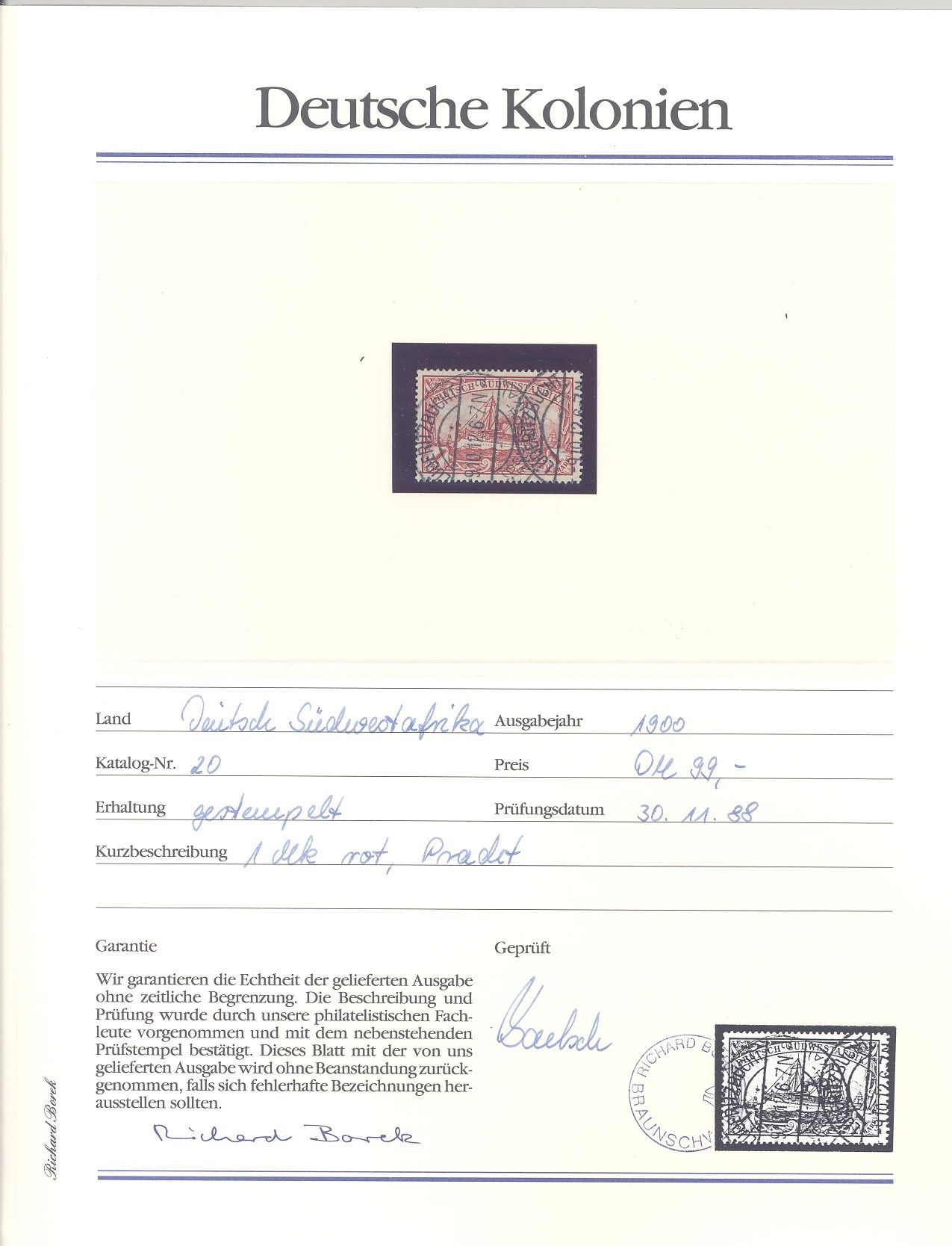 Deutsche Kolonien Deutsch Südwestafrika, netter */** Posten auf Abo Blättchen, hatten damals 375,00 DM gekostet, ein Blatt ist beispielhaft eingescannt. Dabei auch Michel Nummer 3,5, 20 und 20/21.