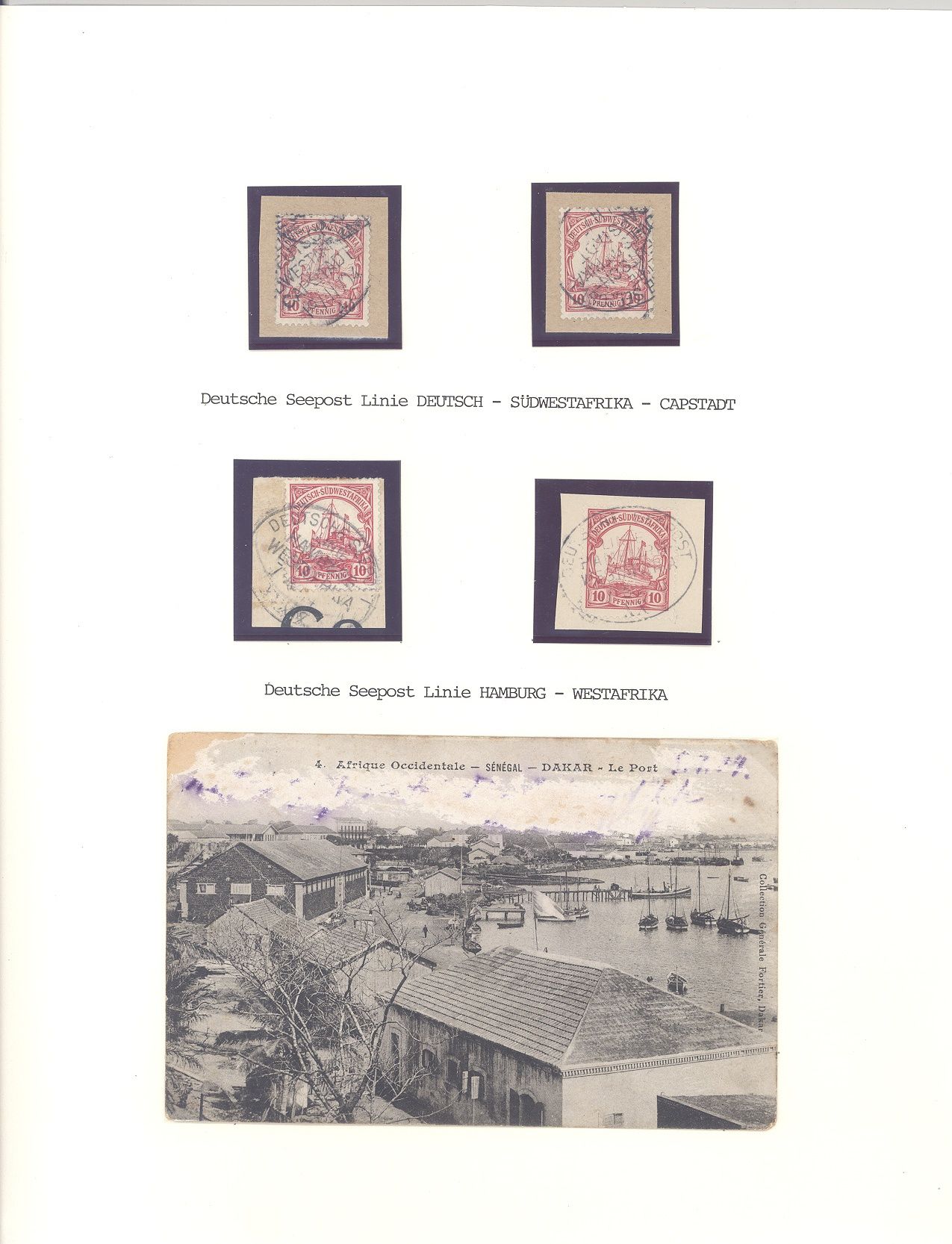 Deutsche Kolonien Deutsch Südwestafrika, interessantes Blatt mit Schiffspost Stempeln und einer Karte. Nette Ergänzung zur Sammlung.
