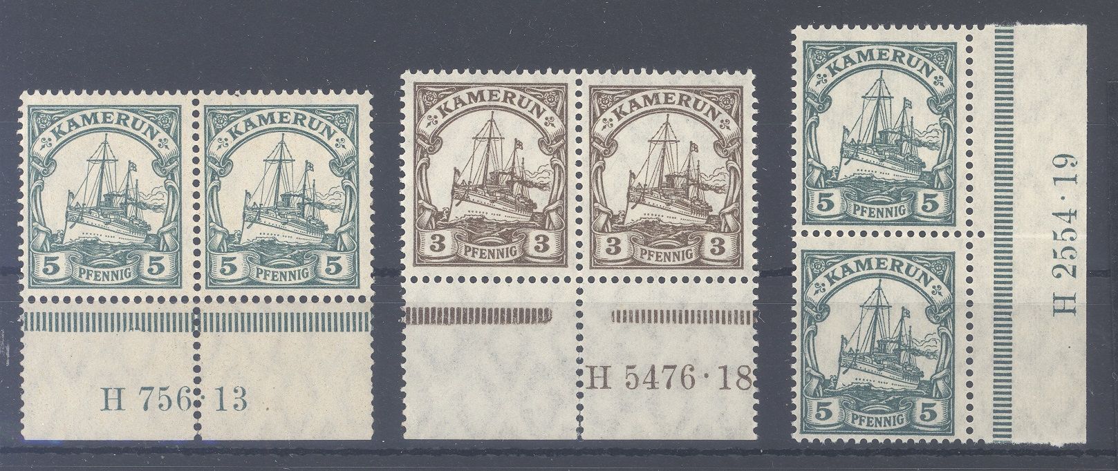 Deutsche Kolonien Kamerun, drei verschiedene ** HAN Paare als Posten, ein Paar hat einen grünen Farbabklatsch, sonst ordentlich. Der Michel passt hier nicht, recht selten einmal angeboten.