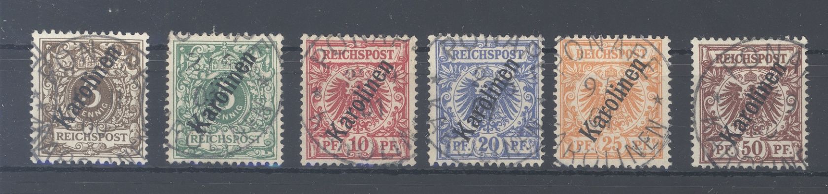 Deutsche Kolonien Karolinen Michel Nummer 1/6 II, Freimarken 1900 gestempelt. Stets billigste Varianten gerechnet.