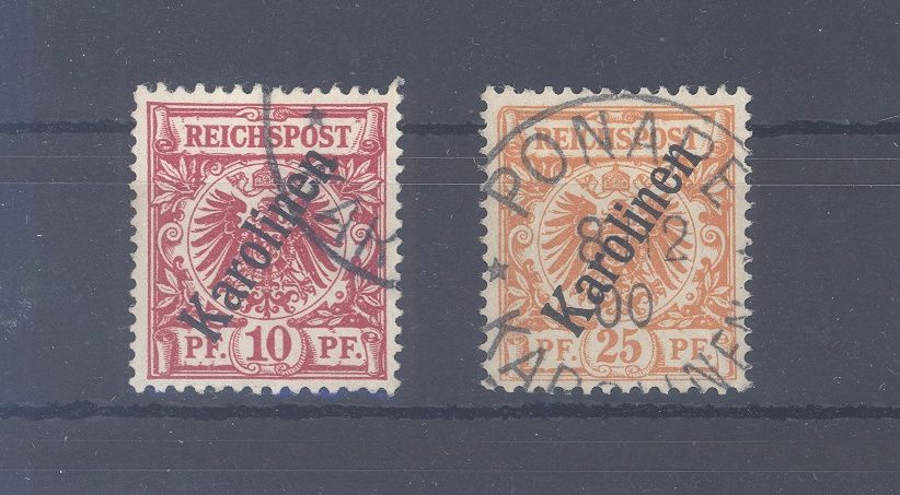 Deutsche Kolonien Karolinen Michel Nummer 3 II b und 5 II b aus Freimarken 1900 gestempelt. Beide Werte sind, geprüft BPP.