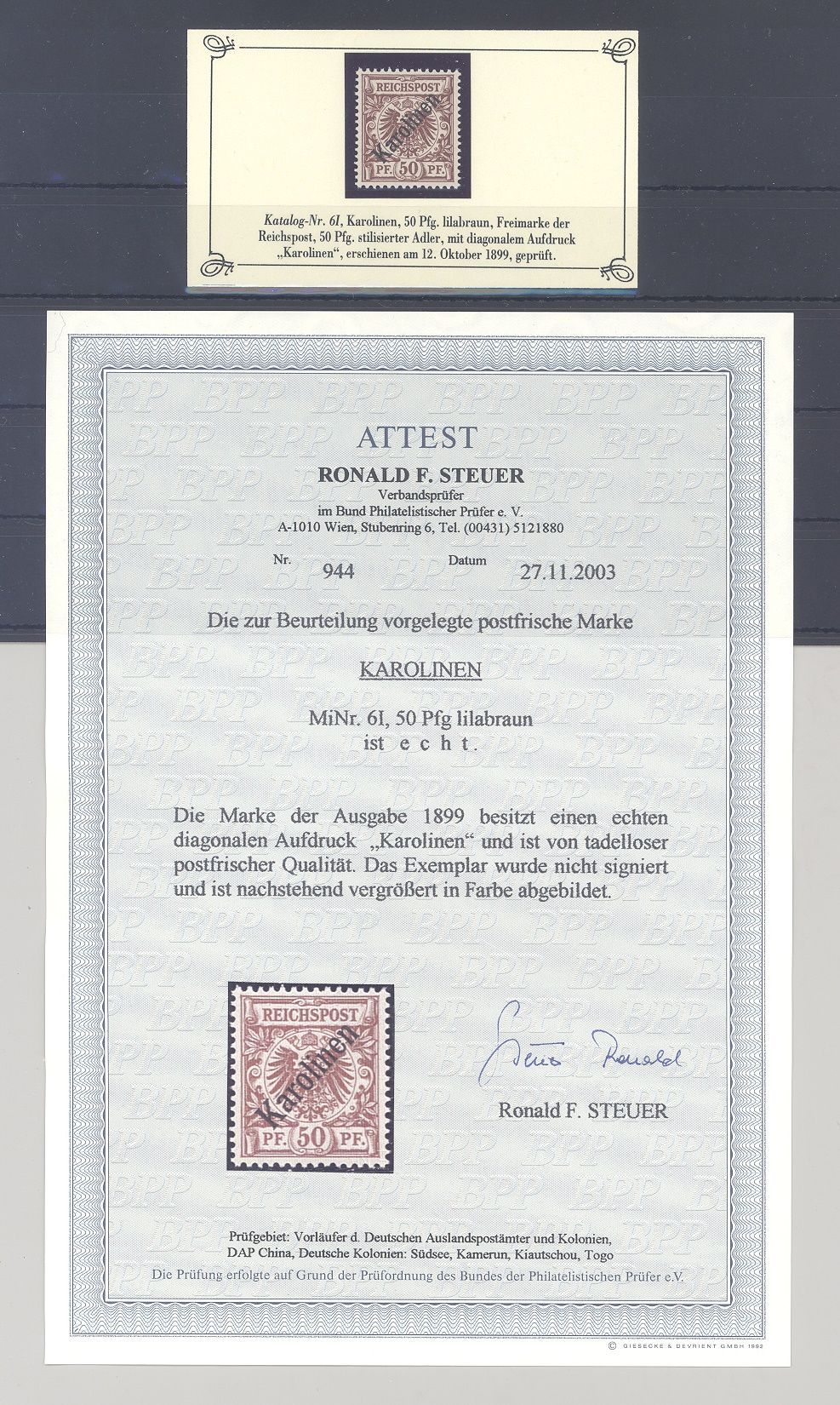 Deutsche Kolonien Karolinen Michel Nummer 6 I, 50 Pfg. Freimarke 1900 **. Es liegt ein FA BPP vor, hat bereits einiges gekostet, ist mit eingescannt, Seltenheit!