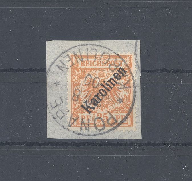 Deutsche Kolonien Karolinen Michel Nummer 5 I, 25 Pfg. Freimarke 1899/1900 gestempelt, ein sehr schöner Wert mit wunderbarem Stempel. Es liegt ein FA BPP vor, hat bereits einiges gekostet, ist mit eingescannt, selten einmal angeboten!