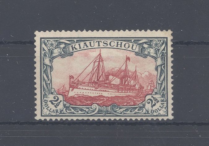 Deutsche Kolonien Kiautschou Michel Nummer 27, 2 1/2 $ Freimarken1905 ungebraucht mit Neugummi.