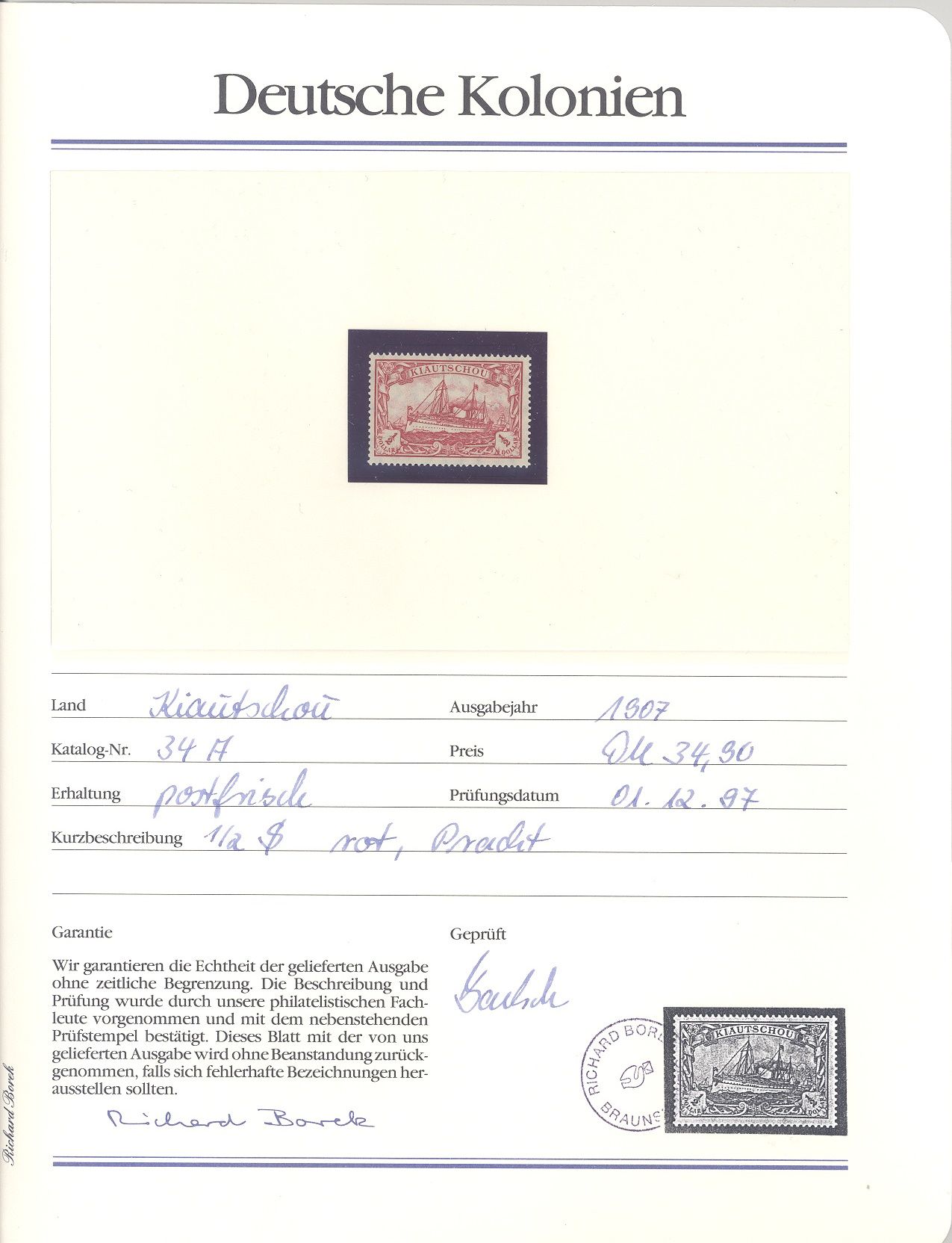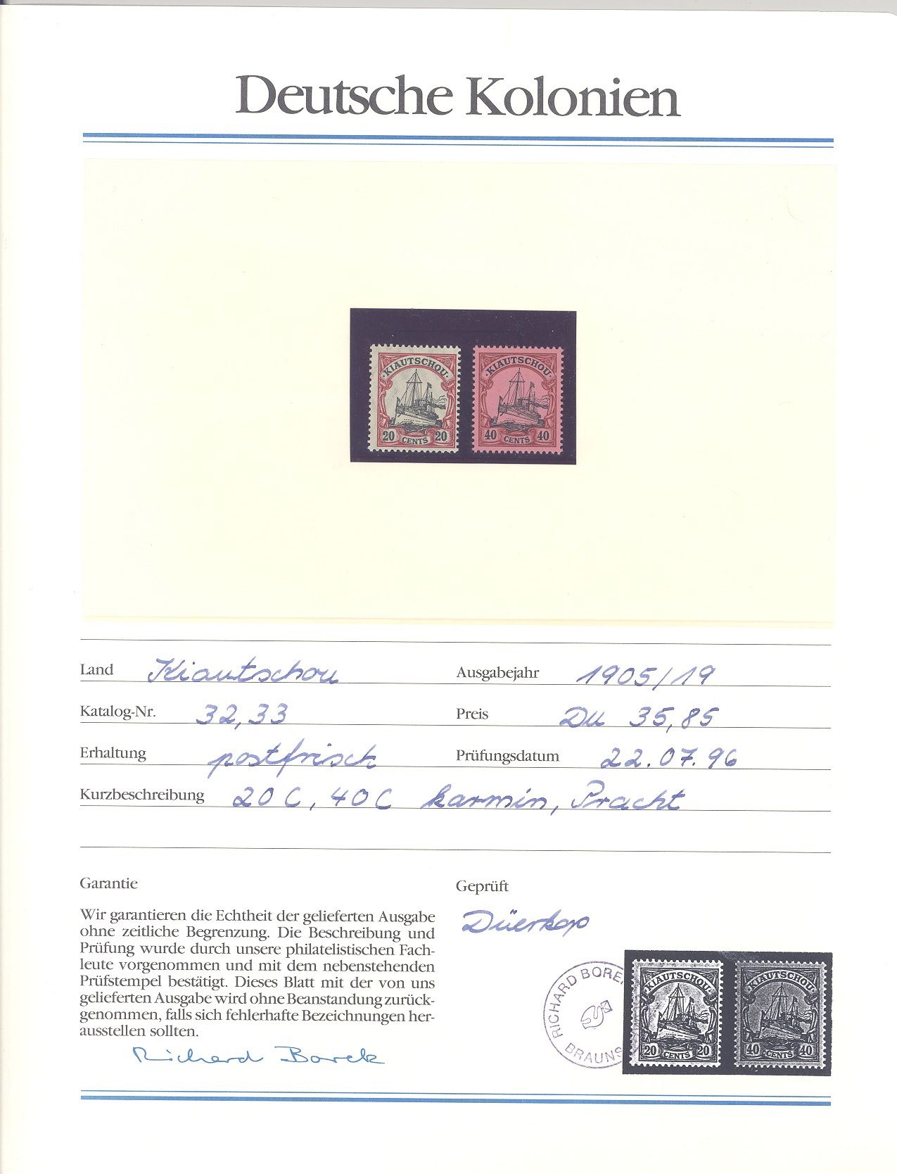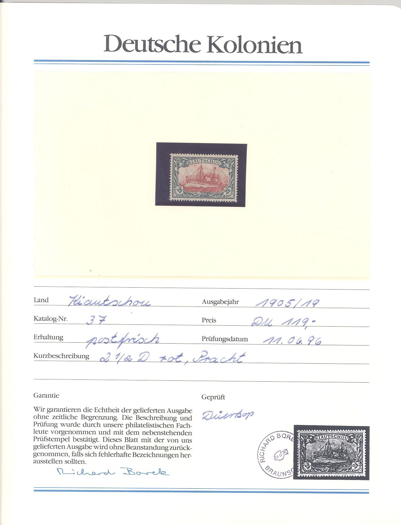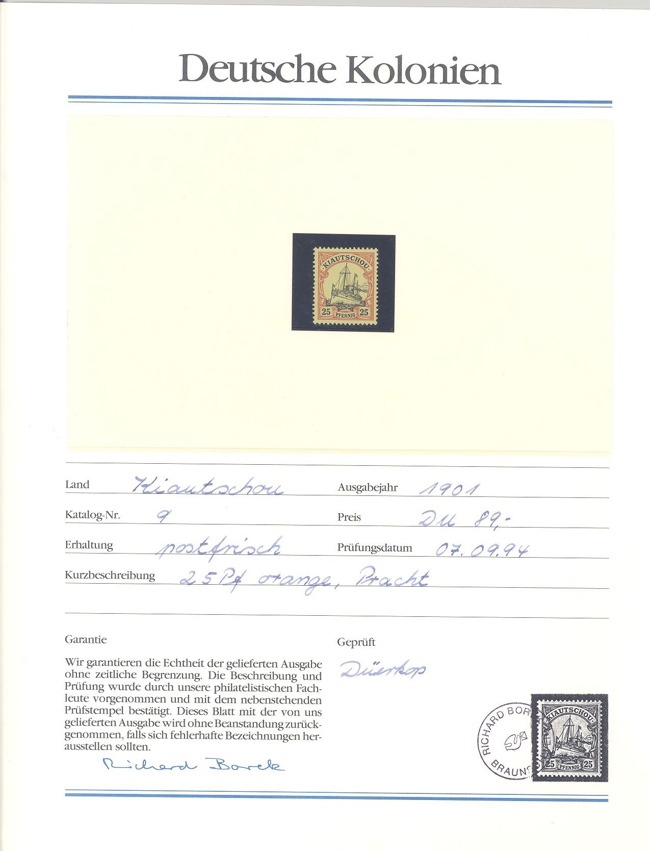 Deutsche Kolonien Kiautschou, ** Posten aus Abosammlung auf fünf Blättern, es sind die Michel Nummern 9, 32/34, 36 und 37 vorhanden. Der Abopreis betrug 321 DM, ein Blatt ist beispielhaft eingescannt.