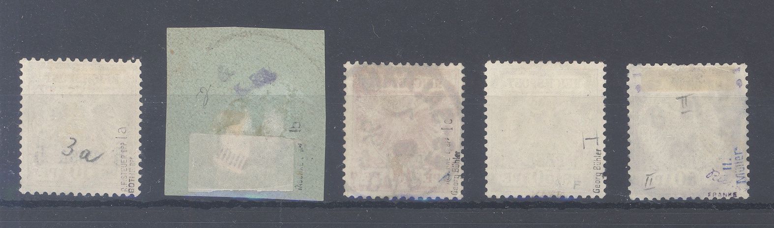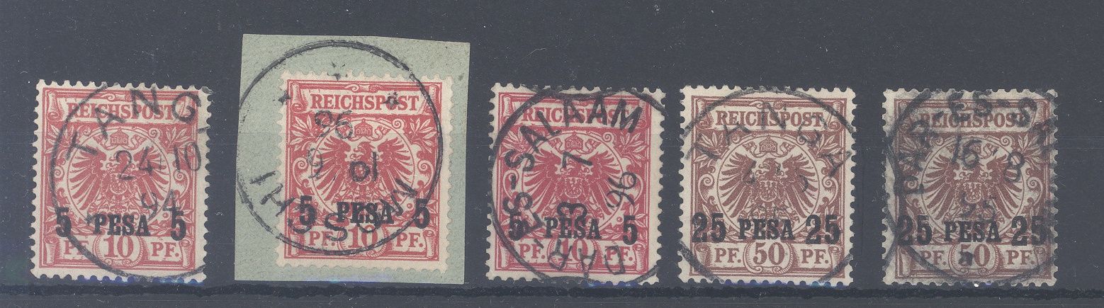 Deutsche Kolonien Ostafrika, gestempelter Posten aus Michel Nummer 1/5, Freimarken 1893/96 bestehend aus fünf verschiedenen Werten. Jeder Wert ist geprüft.