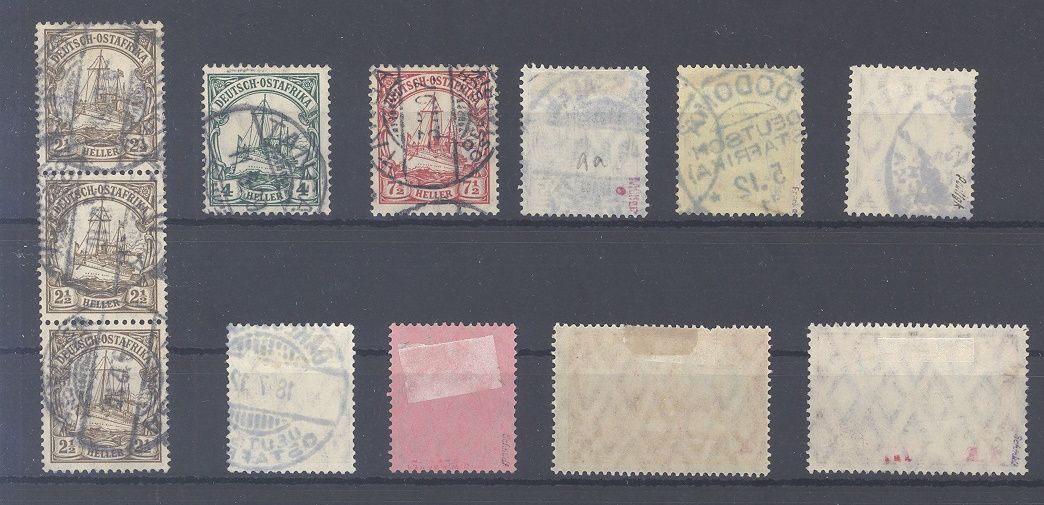 Deutsche Kolonien Ostafrika Michel Nummer 30/39, Freimarken 1905/20 gestempelt. Es fehlen natürlich die gestempelt praktisch nicht existenten Michel Nummer 38, diese ist unberechnet ungebraucht * beigefügt, viele Werte sind signiert-