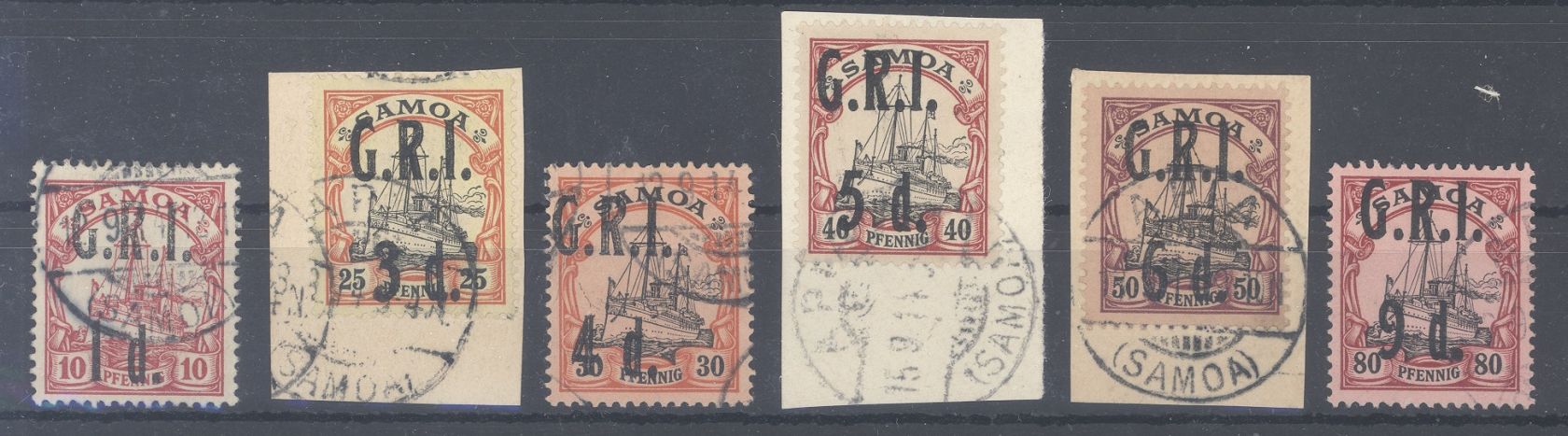 Deutsche Kolonien Samoa, sechs verschiedene gestempelte G.R.I Ausgaben als Posten. Selten einmal angeboten!