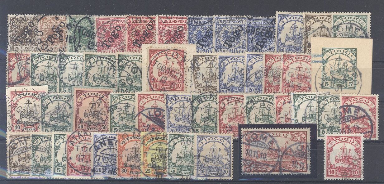 Deutsche Kolonien, recht umfangreicher gestempelter Posten mit auch vielen schönen Stempeln, Briefstücken und Mi.Nr. 16 und 22, werten bereits mit 205,00 Euro, auf Steckkarte, einfach zusammengesteckt. Sollte ein nettes Schnäppchen sein