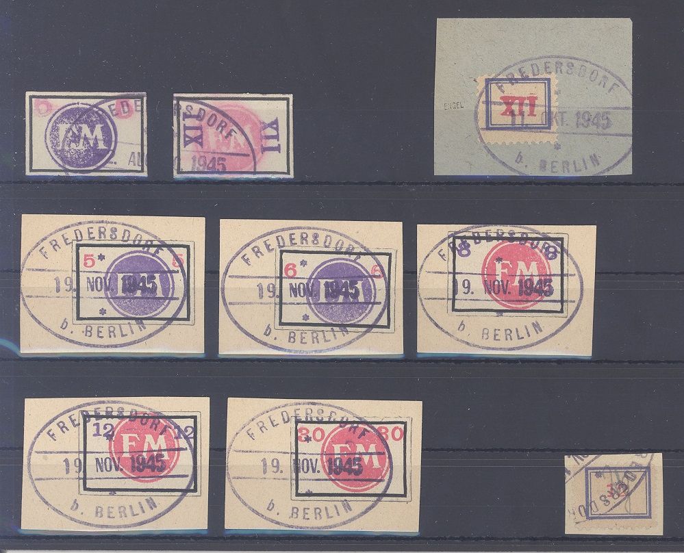 Deutsche Lokalpost Fredersdorf, interessanter Posten allermeist Briefstücke, die ersten vier Briefstücke und die unteren beiden Briefstücke sind geprüft mit Altprüfung. Selten einmal angeboten!