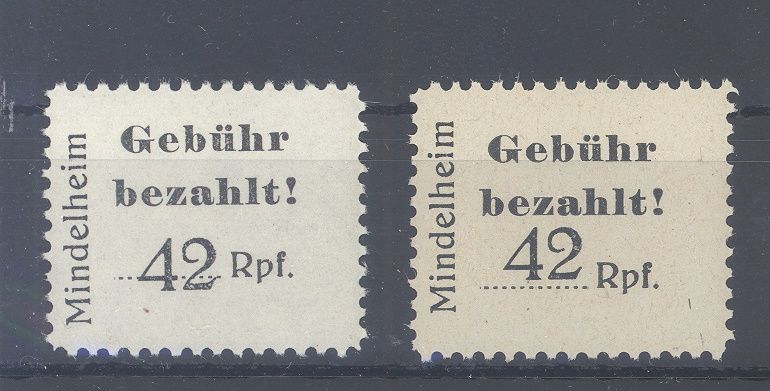 Deutsche Lokalpost Mindelheim Michel Nummer 2 in zwei Typen **. Der Zettel des Sammlers ist mit dabei, hatte wohl einmal 390 DM gekostet.