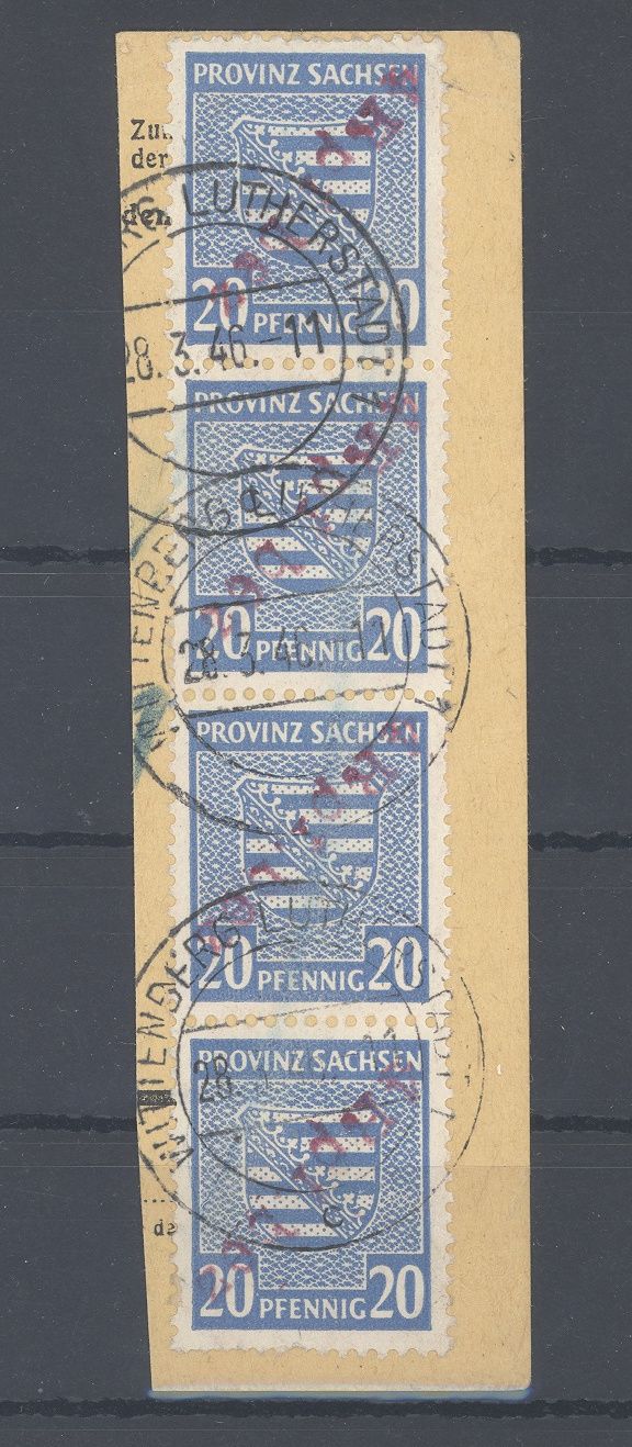 Deutsche Lokalpost Wittenberg Michel Nummer 21 K II als gestempelter Viererstreifen auf Paketkarten Briefstück. Die lose gestempelten Marken werten mit 210,00 Euro, nette Ergänzung zur Sammlung!