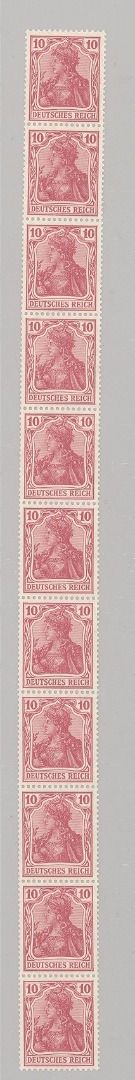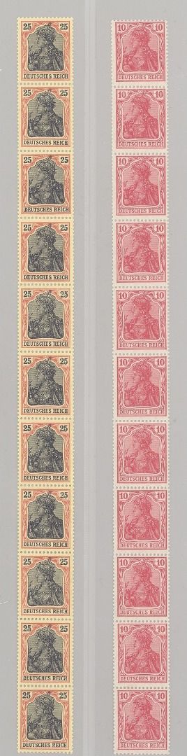 Deutsches Reich, drei Germania Elferstreifen ** als Posten. Es ist 2 x 10 Pfg. Germania vorhanden, eine sollte wohl die bessere 86 II, aber nicht geprüft und dazu auch noch ein Elferstreifen der 25 Pfg.