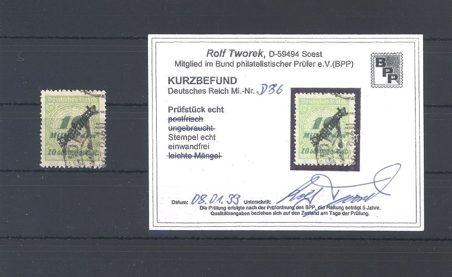 Deutsches Reich Michel Nummer 86, 10 Mrd. Freimarke 1923 gestempelt, ein sehr ordentlicher Wert. Es liegt ein Kurzbefund BPP vor, ist mit eingescannt.