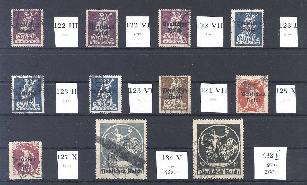 Deutsches Reich, netter gestempelter Posten Abarten aus Michel Nummer 119/38, Freimarken 1920, sind im Michel Spezial nicht notiert. Jeder Wert ist geprüft, nett!