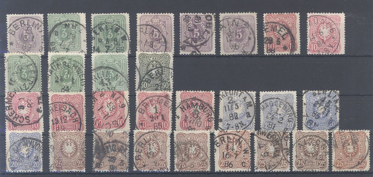 Deutsches Reich, gestempelter Posten aus Michel Nummer 39/55, Adler / Krone 1880. Jeder Wert ist geprüft bzw. signiert, sollte wohl bereits soviel gekostet haben…