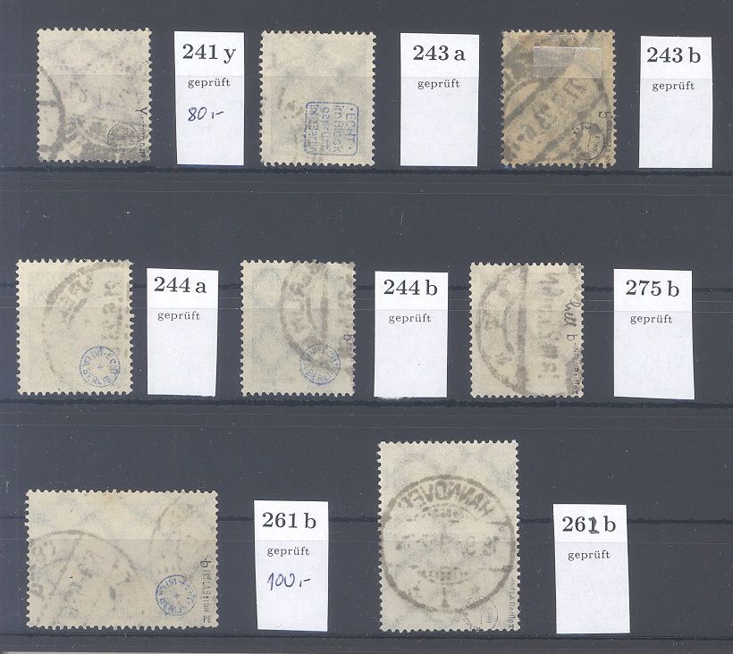 Deutsches Reich, kleinerer gestempelter Posten Farben aus Michel Nummer 241/261, Freimarken 1922/23 bestehend aus Michel Nummer 241y, 243a/b, 244a/b, 275b, 261b und 262b. Jeder Wert ist geprüft Infla.